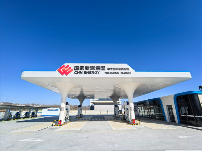 该站位于河北省承德市丰宁县大阁镇撒袋沟门村村北,是国家能源集团综合能源站迭代示范的最新实践成果,打破了传统能源站单一能源供应的局限,是集油、氢、电、光伏、智能机器人多位一体的AI数智化先行示范站,可为不同车型、不同燃料需求的车辆提供一站式、多元化的能源补给服务,同时也是河北省承德区域首座油氢电综合能源站。氢气来源于赤城制氢厂,日加氢能力1000千克,站内配备1台35兆帕加氢机,加氢枪头分别为TK16、TK25和1台智能加氢机器人。
