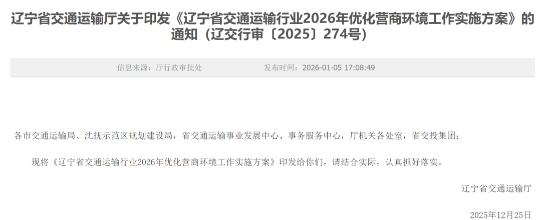 1月5日,辽宁也公布了《辽宁省交通运输行业2026年优化营商环境工作实施方案》,其中提出优化高速公路差异化收费政策,继续实施氢燃料电池货车免费通行、6类(轴)货车、5类(轴)货车等差异化政策,持续降低交通物流成本。这是对2025年5月发布实施《辽宁省推广高速公路差异化收费对氢燃料电池货车免收车辆通行费的实施方案》的明确和继承,该政策在2026年将全面落地运行,覆盖沈阳至大连等主要物流干线。